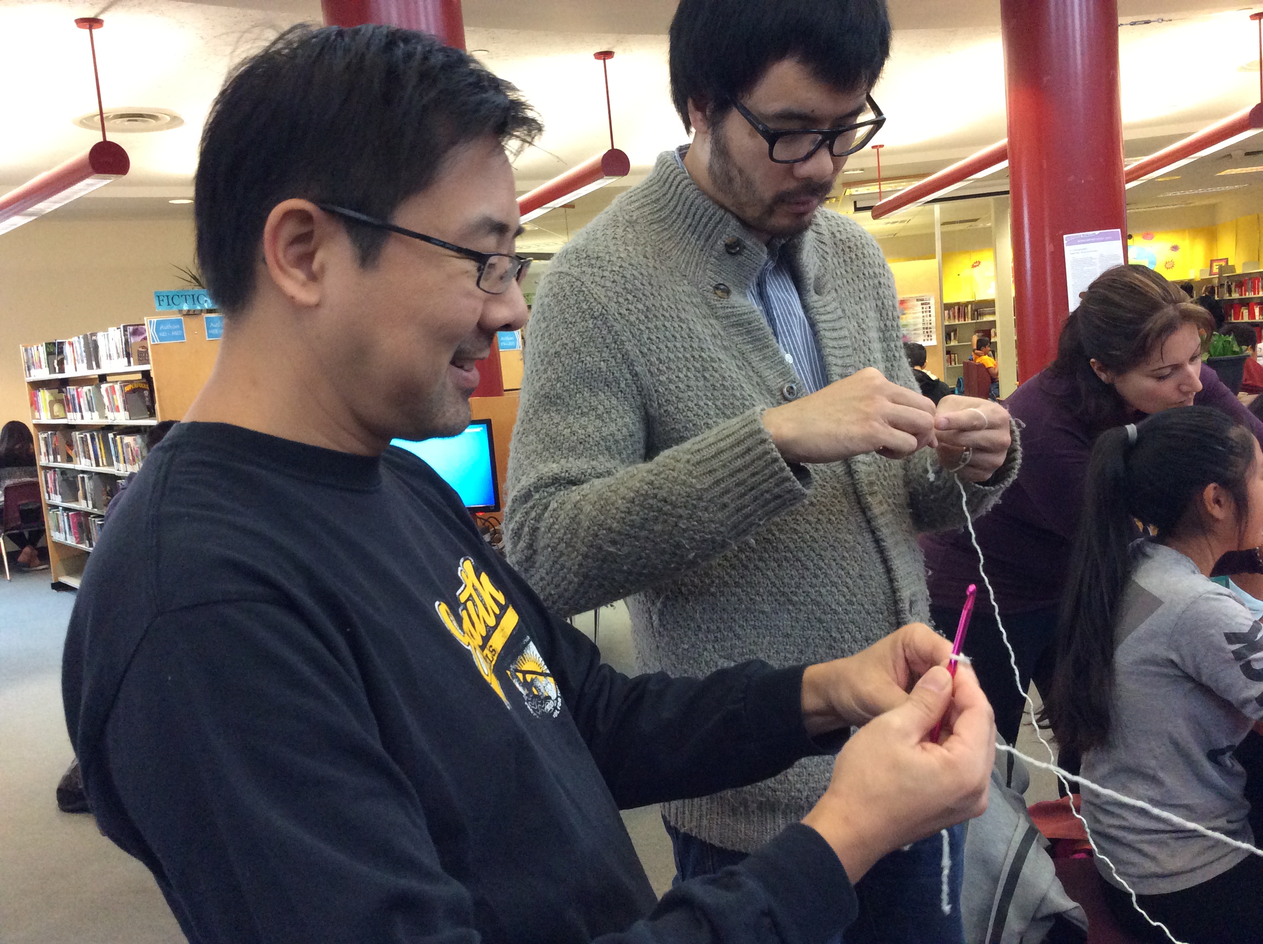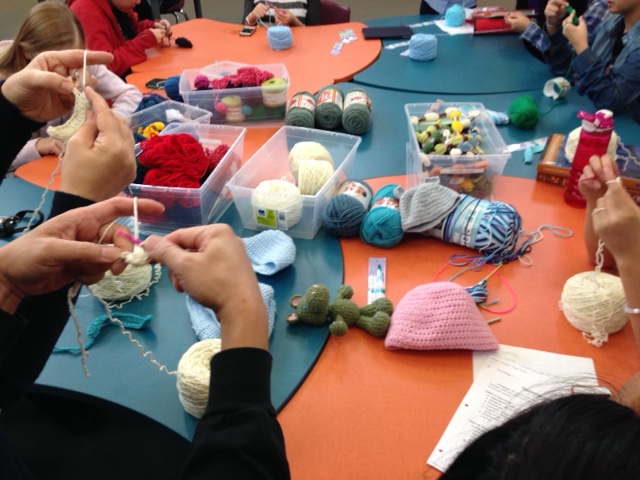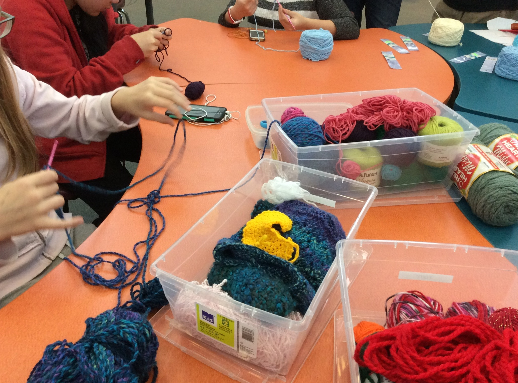 Not all building that goes on in a Makerspace needs to employ wood, metal, electronics, and power tools. This is the aim of the Rebels Makerspace – to design and build using a variety of media (like paper and textiles) – and one of the most useful skills one can develop is needlework (ie. sewing, knitting, crocheting). In this workshop, we led students through the process of starting a project and then continuing their crocheting so that they could produce a simple wool bookmark. The best part of crocheting is that any big mistakes can be quickly reset and restarted, which takes the pressure off students to get it right the first time.