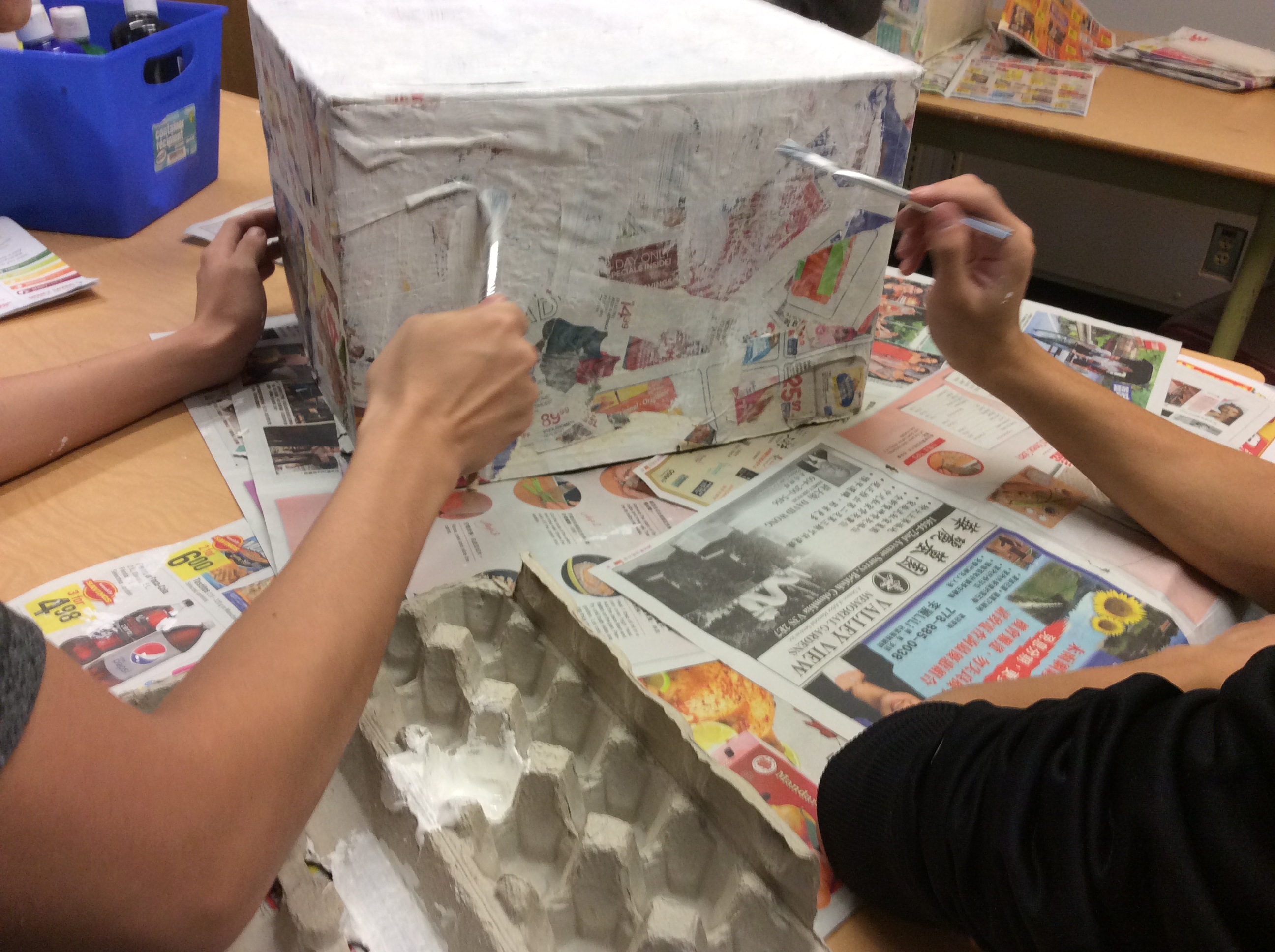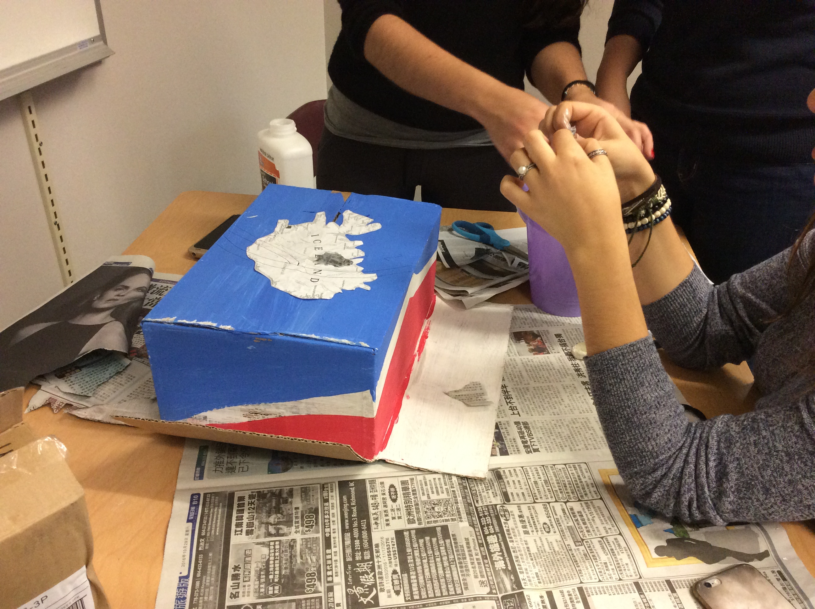 The Rebels Makerspace is not only open during lunch hours, after school, and in-between classes, it’s a place that can be utilized by teachers for class activities because not every class has access to paints, brushes, glue, and building supplies. This was the case for students in Ms. Ghani’s Social Studies 11 class, who used Makerspace paints, brushes, glue, newspaper, and cardboard to construct topographic models. Sure, the space was in mild disarray after the build, but it was well worth it to see the Makerspace help further the social studies curriculum.